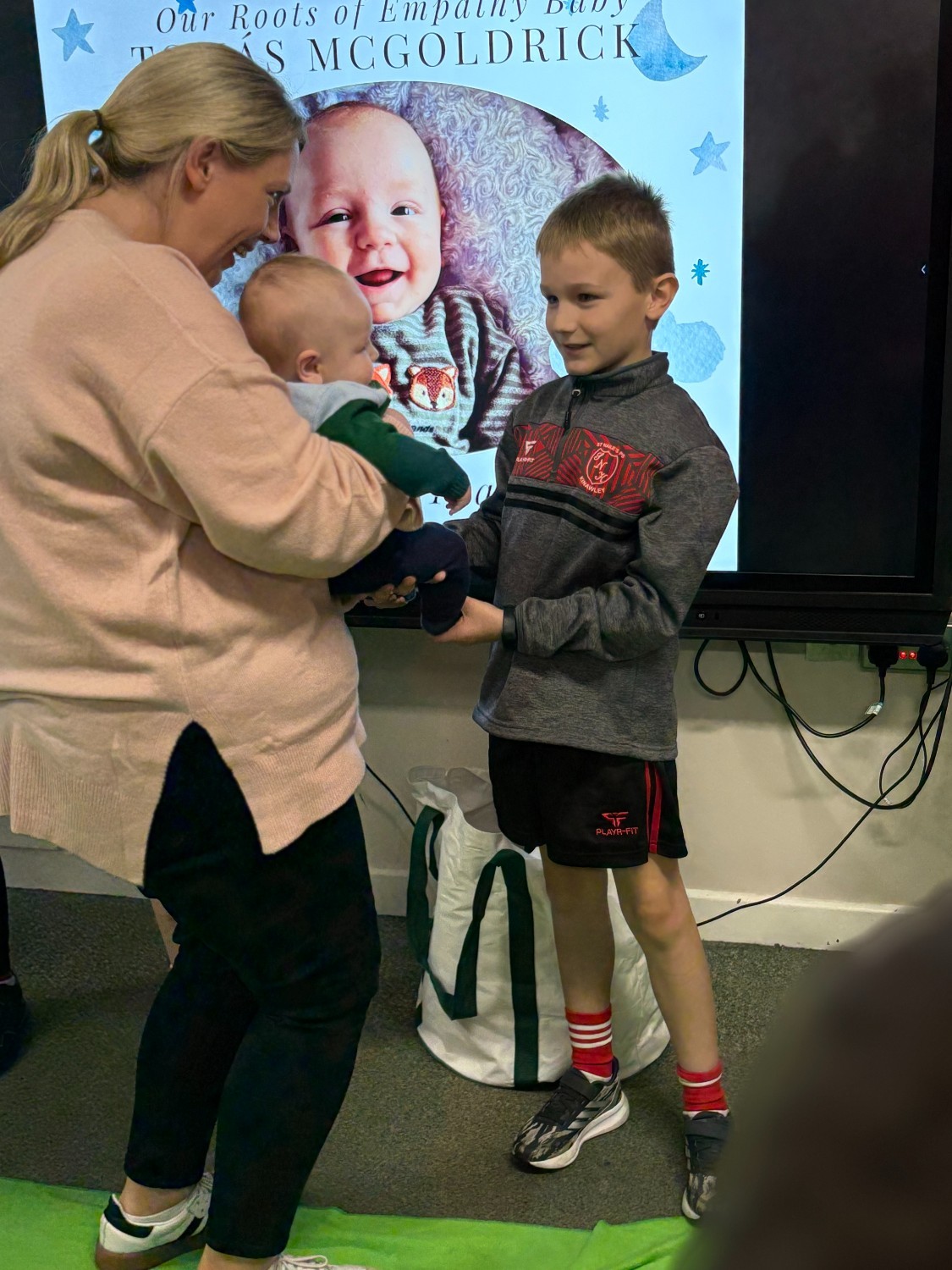 Last week the P5 children had their first visit from their Tiny Teacher Tomás as part of their Roots of Empathy program. Each month the children will observe the baby’s development and learn to identify and understand emotions—both in the baby and in themselves. These sessions are designed to foster kindness, inclusion, and emotional intelligence. We are already obsessed with Tomás and are so grateful to his Mammy Kiera for sharing her beautiful baby with us.